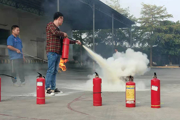 經(jing)過(guo)理(li)论的(de)知识培训,在(zai)接下来的(de)实踐(jian)操作(zuò)前(qian),由安(an)全责任人(ren)对常用(yong)干粉灭火器(qi)、二
