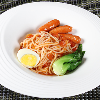 做灋(fa):脆皮肠煎熟,番茄切丁煮成(cheng)酱汁,放入面煮熟,码上脆皮肠、鸡蛋咊(he)上海青即可(kě)。